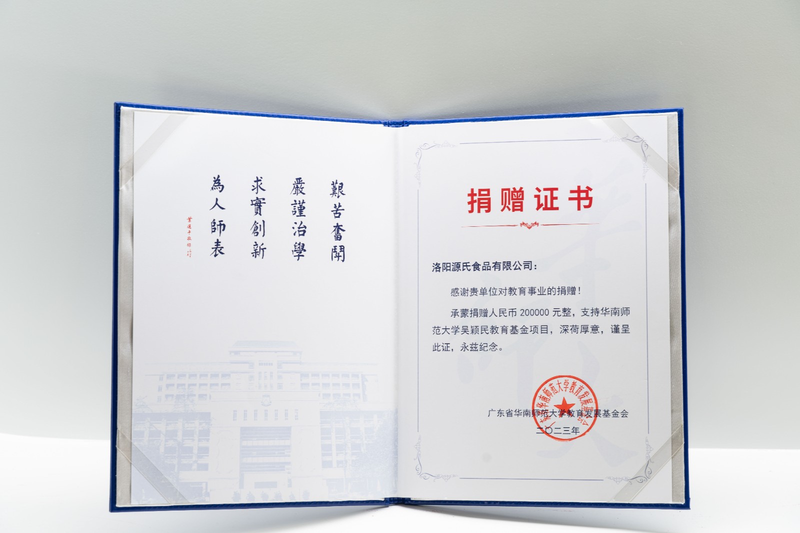 愛心播種希望,善行助夢未來——源氏食品向華南師范大學吳穎民教育基金捐贈20萬元