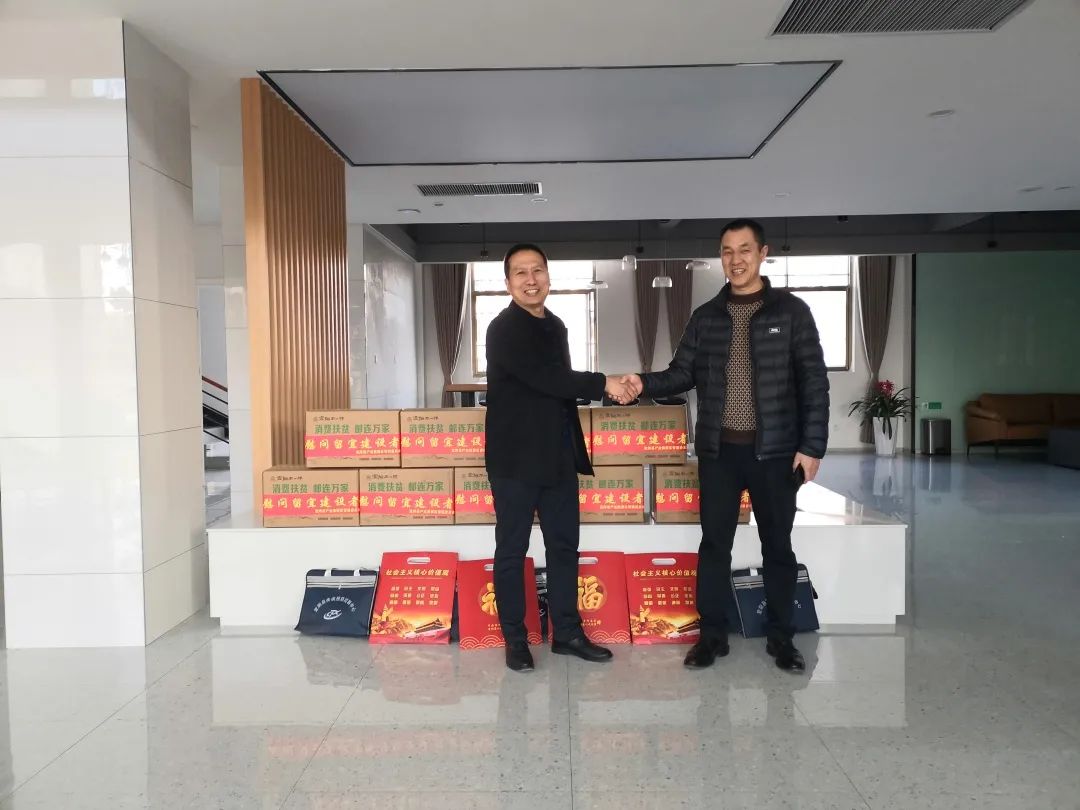 王錫韜主任攜其領導班子一起為我司春節駐廠員工送來了消毒防疫物資、宜陽年貨特產大禮包和新年春聯,預祝源氏2021年生意紅紅火火。