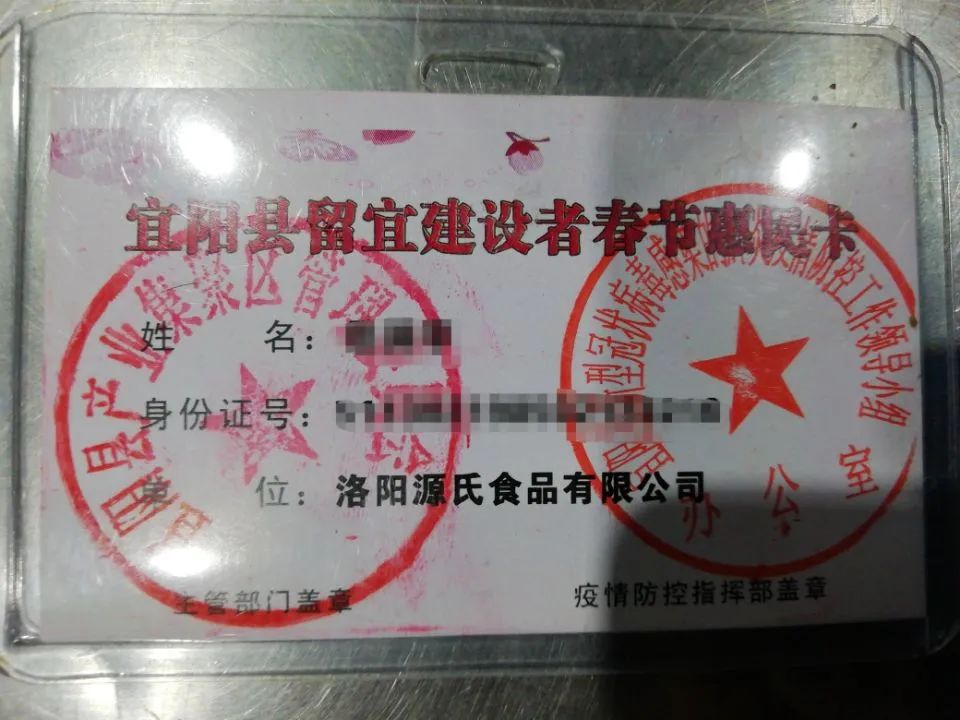 園區領導為源氏春節駐廠人員發放“宜陽縣留宜建設者春節惠民卡”,在春節期間2021年2月1日—2021年2月28日期間,留宜人員可以免費乘坐縣內公交、免費游玩縣內任何旅游景點,縣區內的圖書館、城市書屋、文化館等為留宜人員正常開放。
