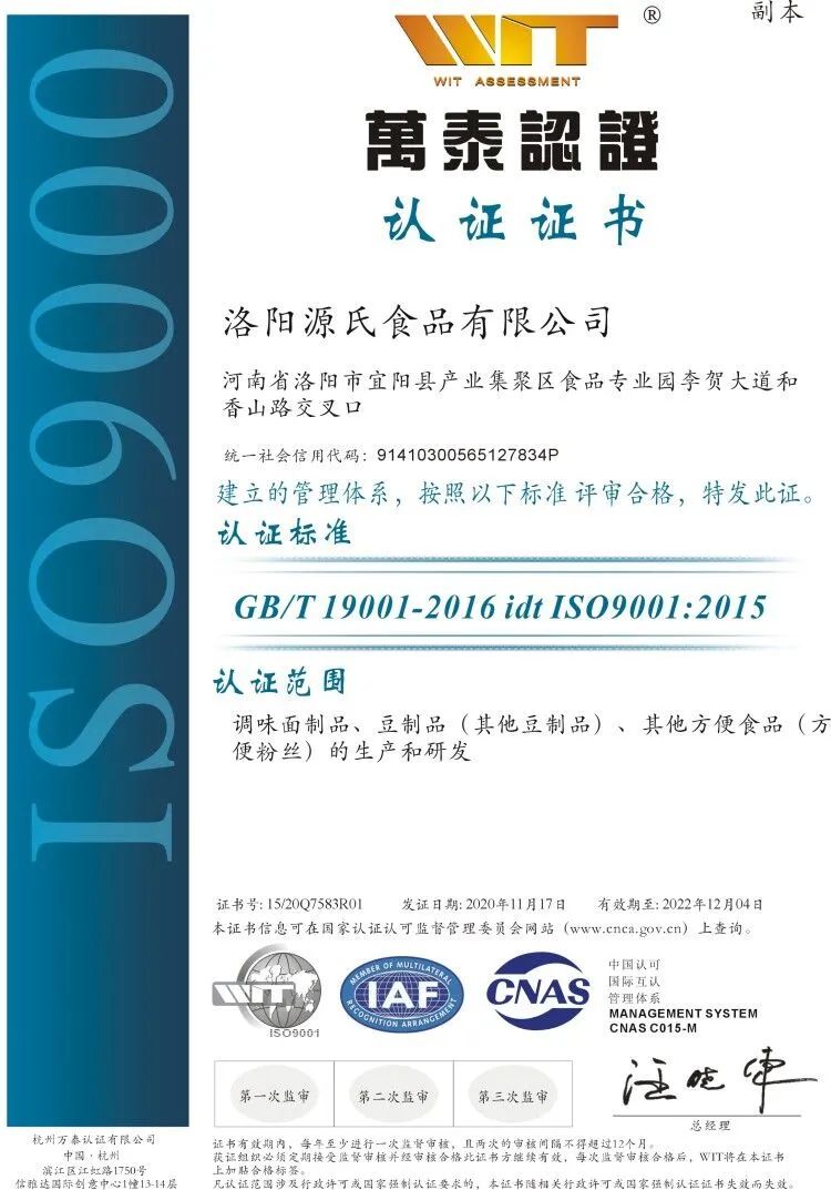 為了認真貫徹落實食品安全法,切實保障消費者的食品安全,我司認真開展食品質量管理控制工作。迄今為止,已取得ISO9000質量管理體系認證,ISO22000食品安全管理體系認證,HACCP危害分析與關鍵控制點管理體系認證(業內稱之為“控制食品安全和風味品質的***好***有效的管理體系”)。
